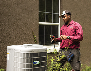 It’s the HVAC technician’s responsibility to make sure the coils are clean, the fan motor functions correctly, and the unit’s panels aren’t damaged. Outdoor units backed up against a wall or shrubs will have a harder time exchanging heat, as those can block airflow. The best we can do is discuss the situation with the customer.